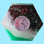 Elevate your space with this handmade resin desktop clock! Each piece is a unique creation, crafted with premium epoxy resin and eye-catching inclusions that make it truly one of a kind. Powered by AA batteries, this clock not only keeps you on time but also adds a splash of vibrant personality to any room.