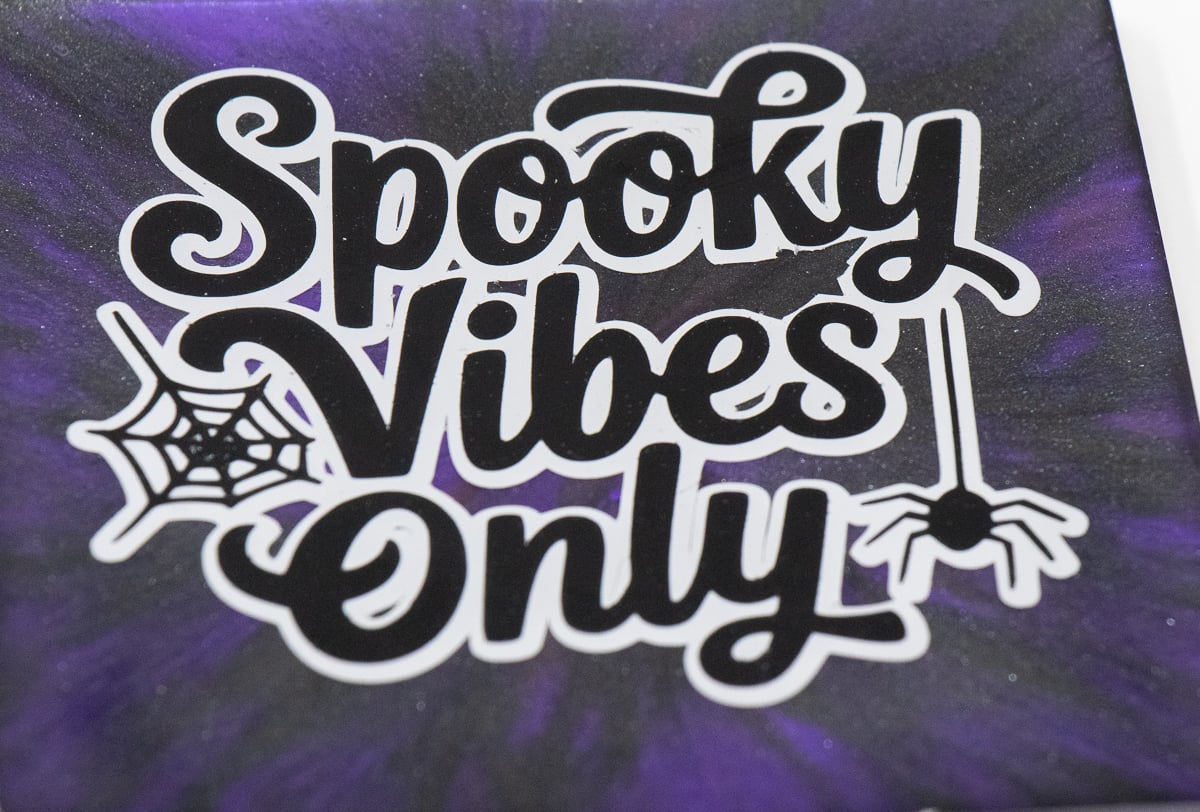 Fun quotes on the Coasters. “I’m In My Spooky Era”, “Spooky Vibes Only”, “My Dog is My Boo”, “Drink up Witches”!