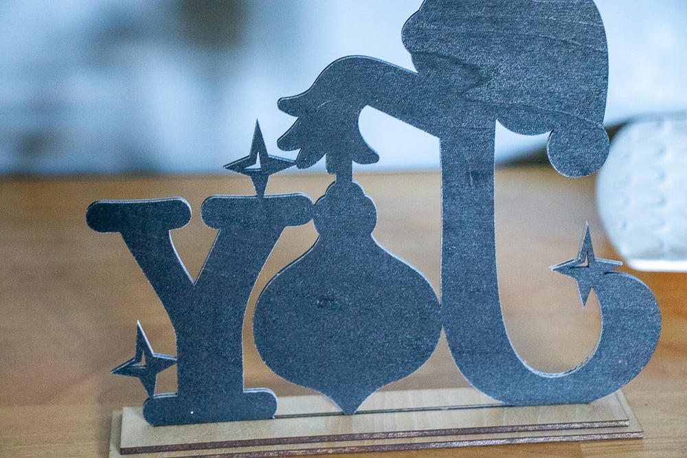 Get ready to elevate your decor for the holidays with this laser cut Joy Grinch Christmas Sign! This table sign includes a wooden stand that is cut to fit perfectly with the sign. You can also attach a magnet to the back, making it easy to hang on your refrigerator, office shelf, or anywhere you'd like for added fun. This is perfect for adding charm to your mantel or table decor. This sign will brighten up any space!